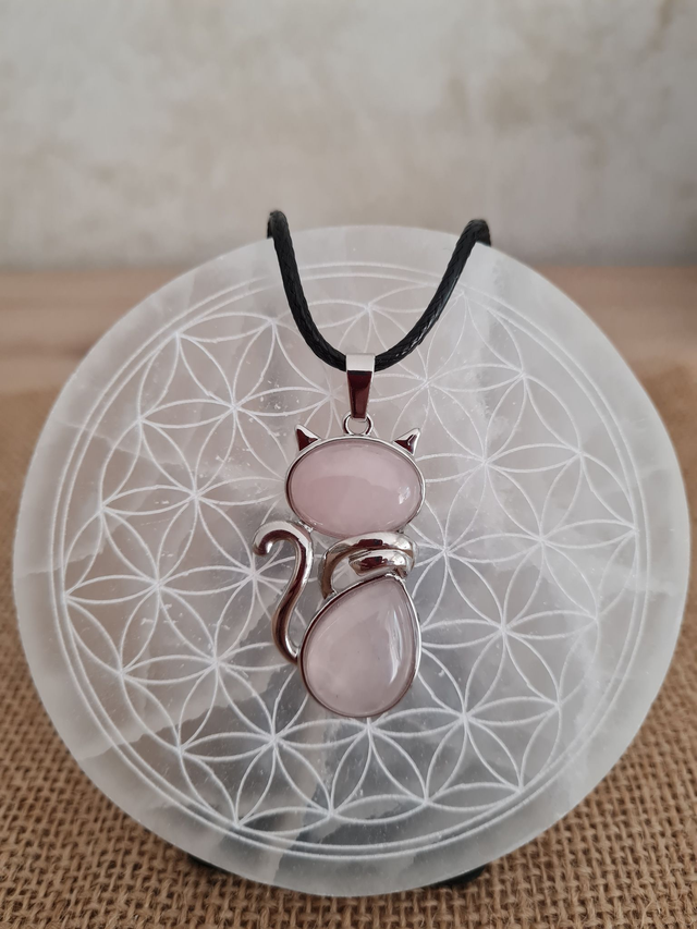 pendentif chat Quartz rose