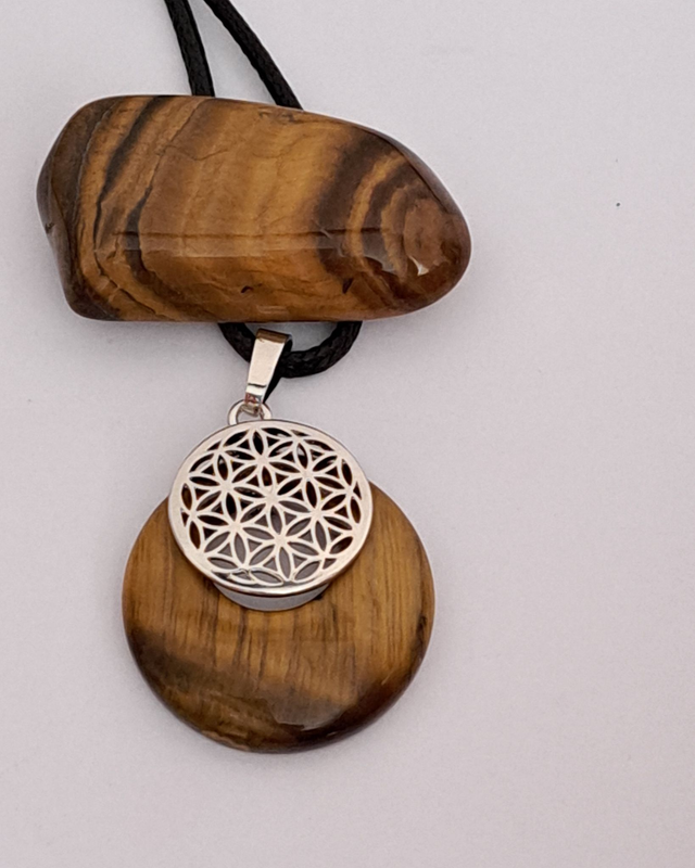 pendentif en Œil de tigre avec fleur de vie