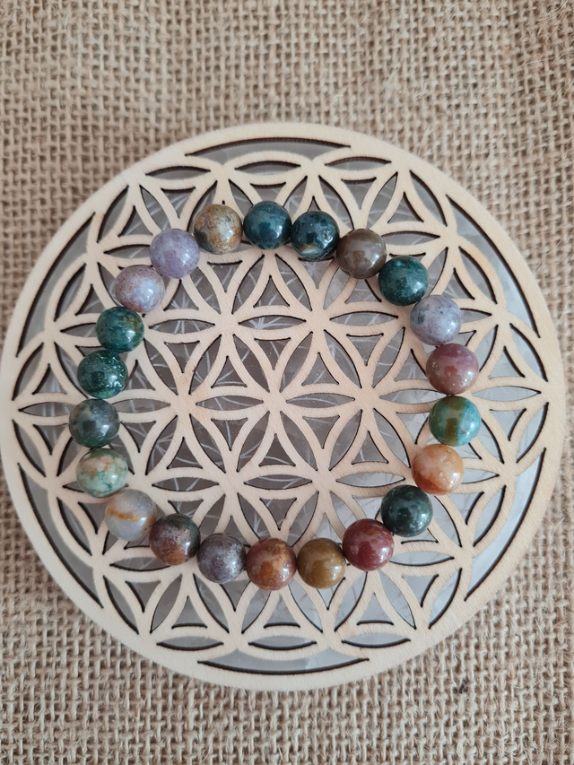 L'Agate indienne est utilisée comme pierre d'ancrage, elle à des vertus calmantes et apaisantes, favorise la clairvoyance, la concentration et la confiance en soi, idéale pour les artistes et les étudiants pour sa capacité à développer créativité et intellect, les maux de gorge, problèmes dentaires, affections cutanées.